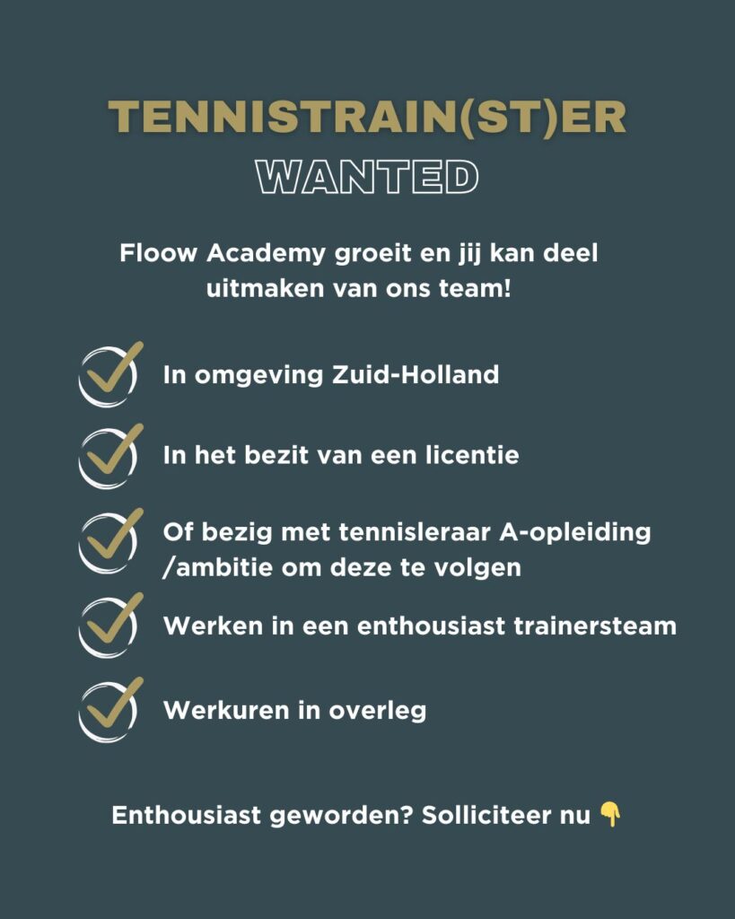 Floow Academy is de tennisschool die de tennistrainingen verzorgt op LTC ’t Loo in De Lier.